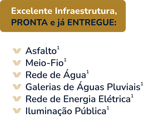 C.R.I - Cartório de Registro de Imóveis - Aragoiânia Goiás - R-2-03.7200, 25 de fevereiro de 2011. 1Especificações de infraestrutura, estão relacionadas no Memorial Descritivo do empreendimento. Conforme contrato de compromisso de compra e venda. Consulte o corretor autorizado sobre as condições de venda. As imagens das calçadas são meramente ilustrativas, não fazendo parte da infraestrutura a ser entregue pelo empreendedor, a construção das mesmas são de responsabilidade dos compradores. As obras: Rede de Água, Rede de Energia elétrica, Iluminação Pública, Asfalto, Meio-fio e Galerias de Águas Pluviais, segue cronogramas de execução do empreendedor, e terão seus prazos de interligação ao sistema público, estabelecidos unicamente pelas concessionárias EQUATORIAL e SANEAGO. C.R.I - Cartório de Registro de Imóveis - Aragoiânia Goiás - R-2-03.7200, 25 de fevereiro de 2011
