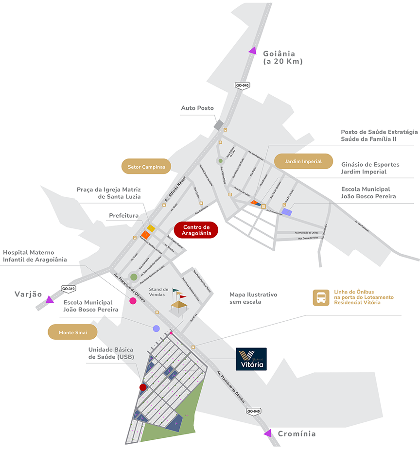 Convidamos você para conhecer o Loteamento Residencial Vitória, um empreendimento imobiliário dentro da cidade de Aragoiânia. O Loteamento Residencial Vitória está integrado a malha urbana da cidade. Garanta o bem-estar e o futuro da sua família. Invista em um lugar que oferece qualidade de vida e a conveniência de ter tudo o que você precisa, perto de você.